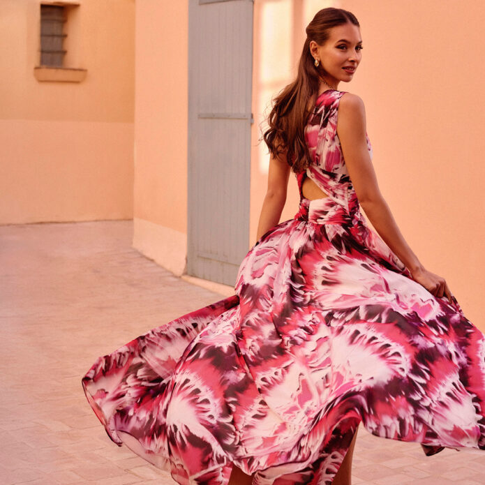 Ahogy kibontakozik a nyár, a kollekció hangulata is lágyabbá válik. A Sunset Petals fejezetben a könnyed anyagok és a rétegzett sziluettek kerülnek a középpontba, amelyek minden lépéssel gyönyörűen mozdulnak.